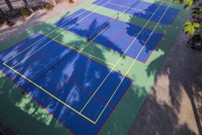 For pickleball, players must wear non-marking shoes at all times, and shoes must be worn upon entering the facility. Barefoot play is strictly prohibited to ensure safety and court maintenance. Sports equipment such as paddles and balls are available for rent; however, socks are compulsory if renting shoes, and players are requested to bring their own. Each pickleball court allows a maximum of four players per booking.
