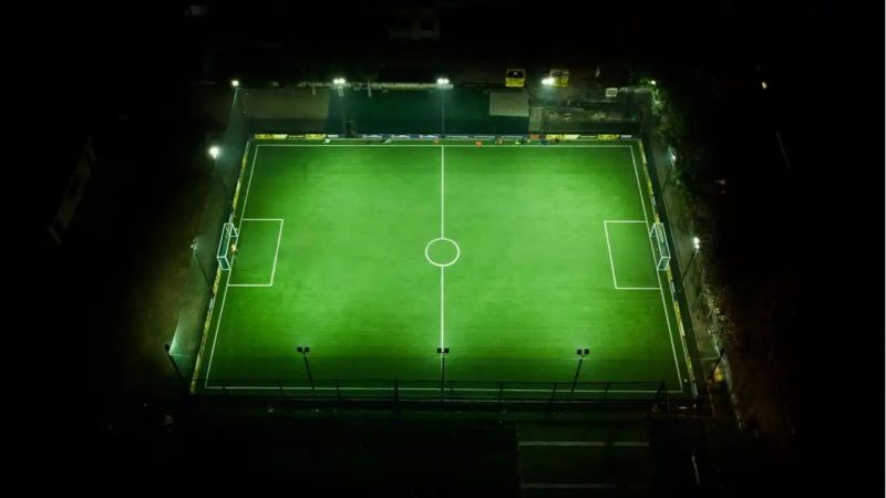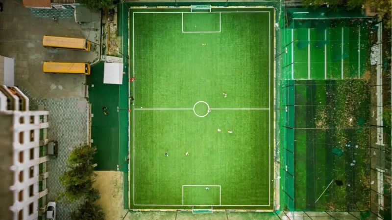 A solid 7v7 football arena inside Guru Nanak Public School, Rajouri Garden. The turf is properly maintained, the layout is spacious, and the overall setup doesn’t feel like a jugaad arrangement. Ideal for casual players, academy kids, and those weekend warriors who think they’re two tackles away from an ISL tryout.