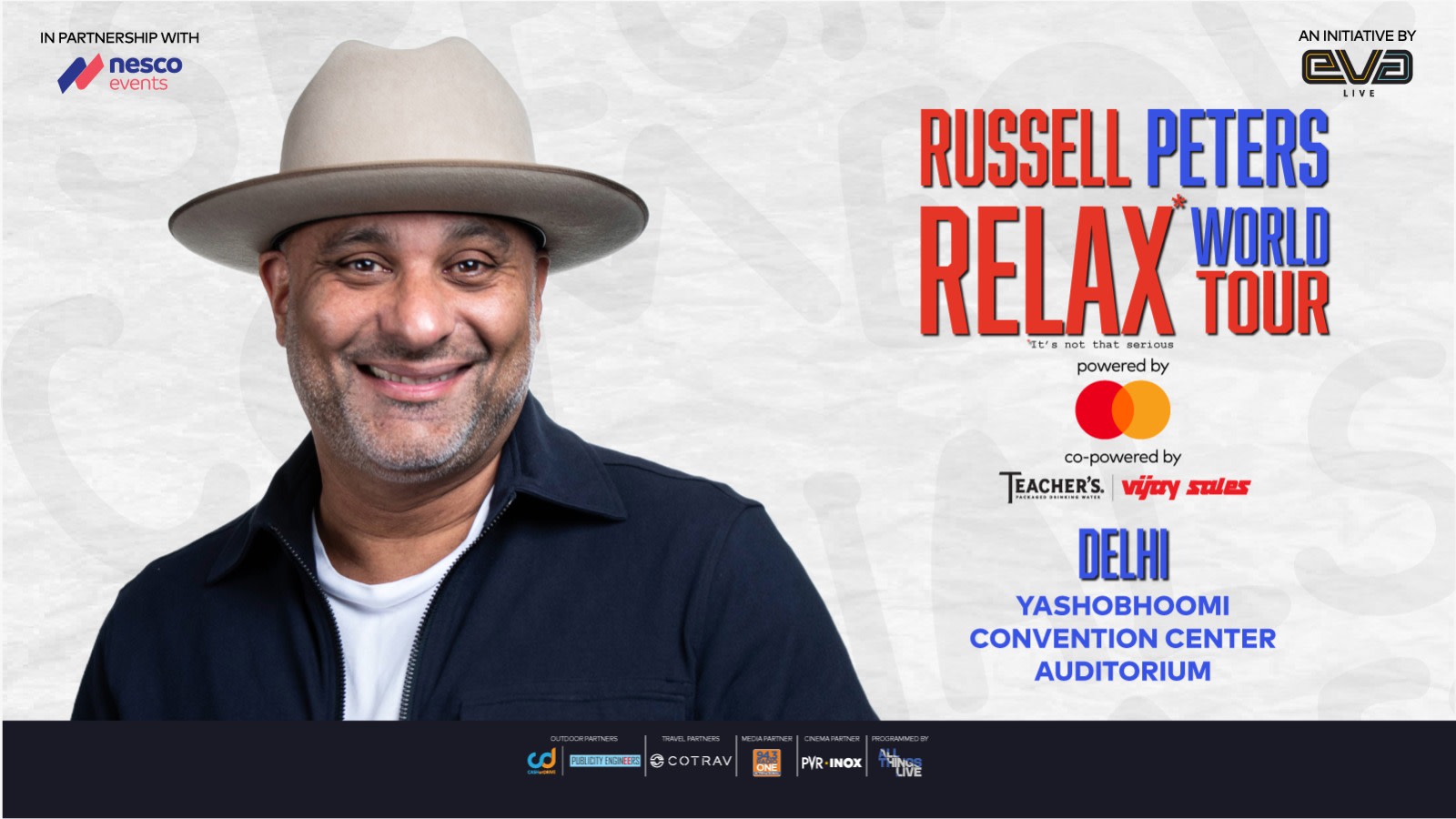 Get ready, India! The world’s funniest man is back to set the stage on fire with unstoppable laughter. Russell Peters, the global comedy sensation, is bringing his latest tour, “RELAX* World Tour - *It's not that serious,” to India, and you don't want to miss it.