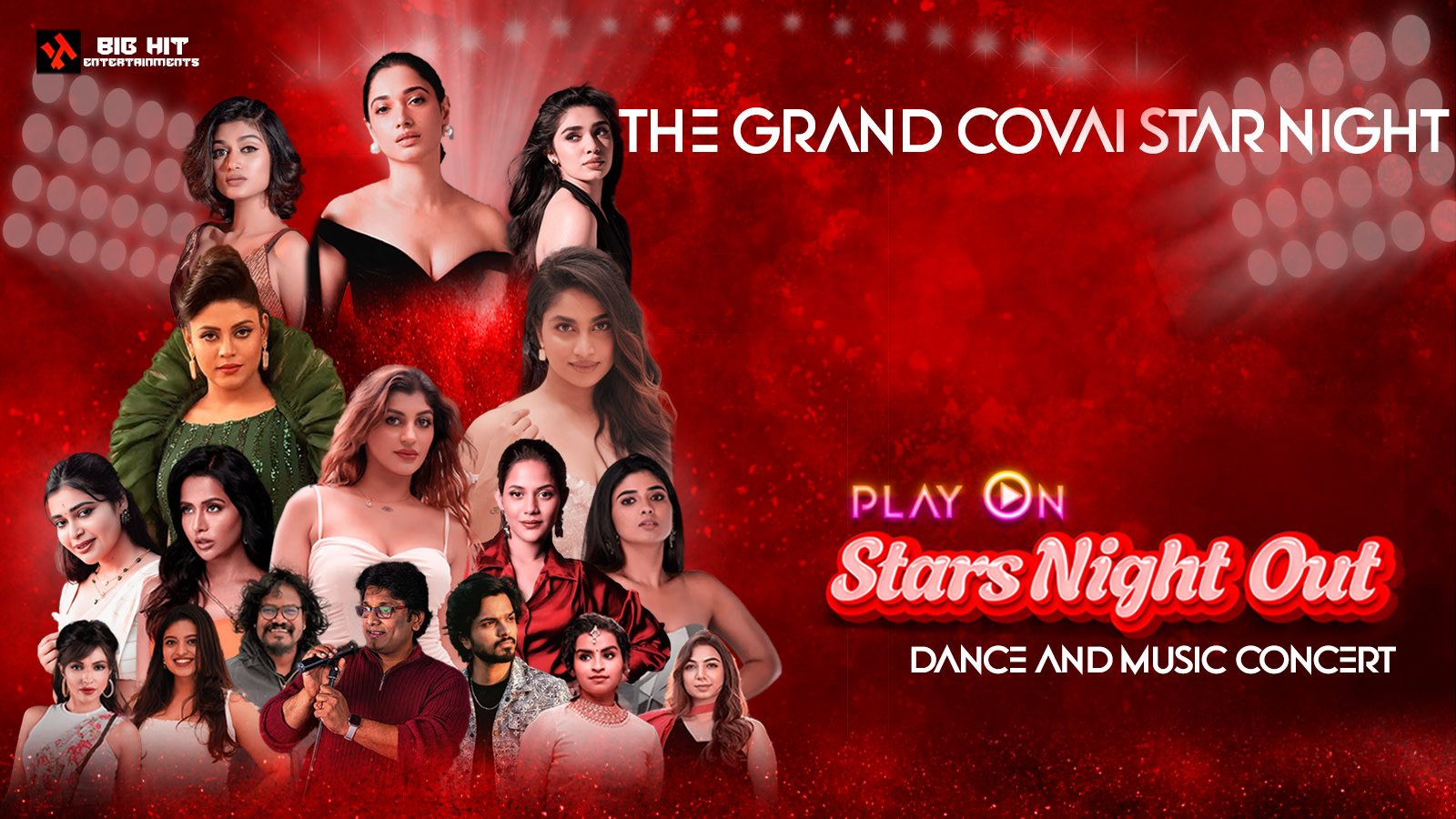 Get ready, Coimbatore. The stars are aligning for the most spectacular night of music and dance the city has ever seen. Stars Night Out is bringing together 15+ top stars, including the biggest names in singing and dance, for an unforgettable night of high-energy performances, chart-topping hits, and jaw-dropping choreography.
