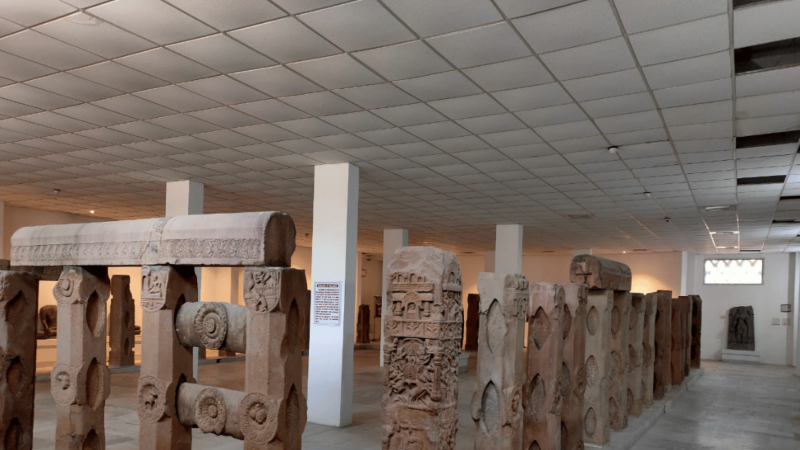The museum displays images of Buddha in varied mudras and sculptures of Tara, Avalokiteshvara, and Hindu deities such as Vishnu and Ganesha. It also preserves sandstone railings from the Sunga period and granite railings from the Pala era. These objects demonstrate the continuity of worship, changes in iconography, and the craftsmanship that characterised Buddhist and Hindu expression across a broad chronological span.