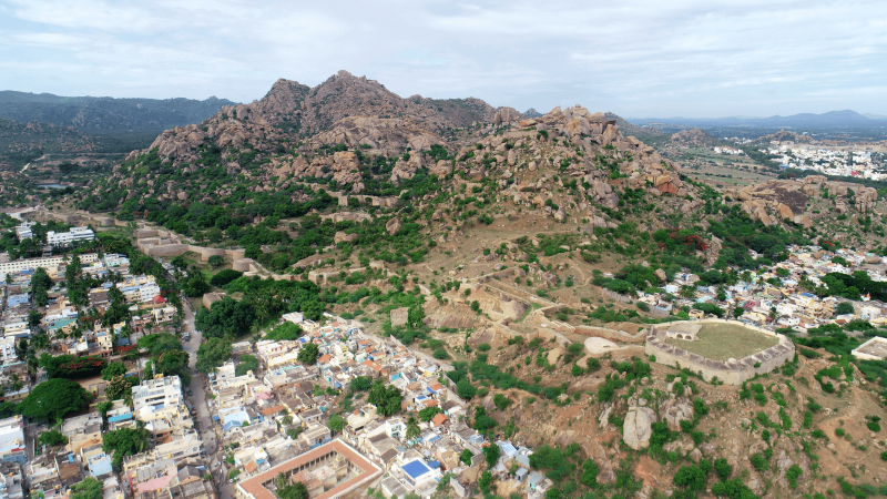 Chitradurga Fort, classified as a giridurga or hill fort, stands on a granitoid rise and exemplifies the military architecture of ancient times. Harmoniously integrated with its surrounding landscape, the fort employs natural granite boulders to create a commanding defensive profile.