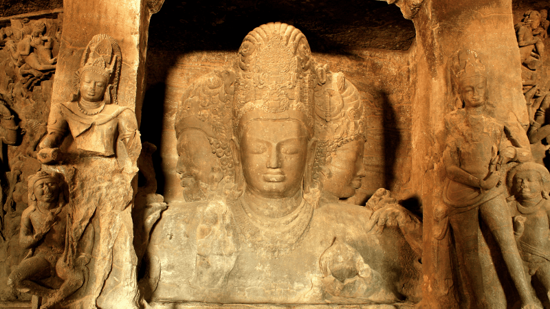 The Elephanta Caves are located on an island off the coast of present day Mumbai in Maharashtra, India. The site holds exceptional cultural significance as a visual expression of Hindu theology and artistic ideals, preserving narratives associated with Shiva and reflecting enduring religious traditions.