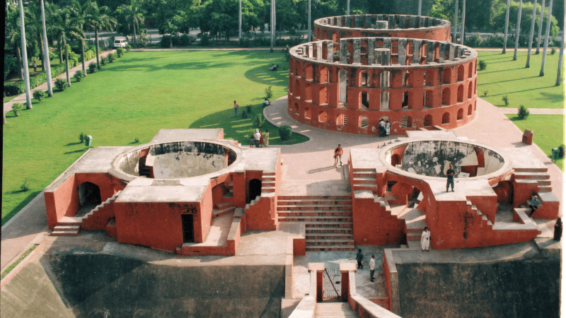 Samrat Yantra’s vast gnomon and the immersive Jaiprakash pits.