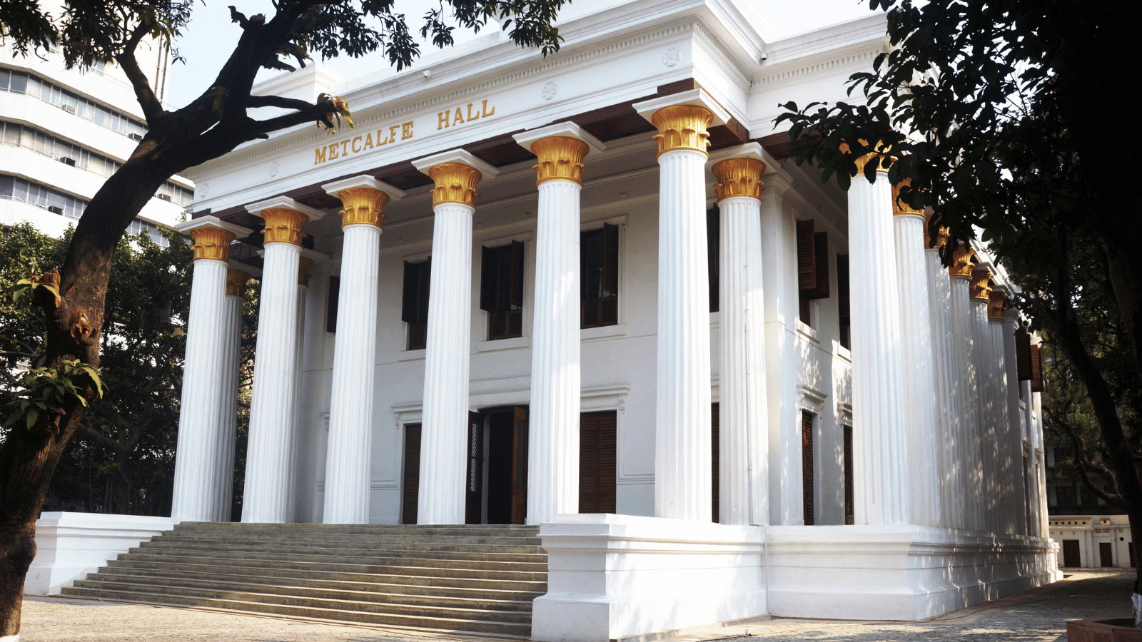 Metcalfe Hall is a distinguished double storeyed public building that stands prominently at the junction of Hare Street and Strand Road. Designed by City Magistrate C. K. Robinson, it was created in honor of Charles Metcalfe, who served as Governor General of India from 1835 to 1838 C.E. The structure presents a commanding presence through its classical profile and its harmonious proportions.